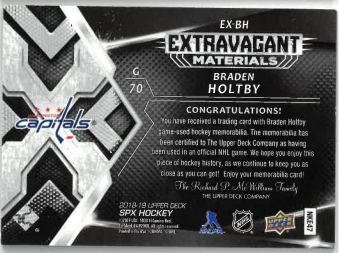 2018-19 UD SPx Extravagant Materials Braden Holtby č. EX-BH