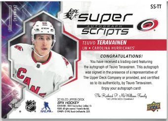 2019-20 UD SPx Super Scripts Autograph Teuvo Teravainen č. SS-TT