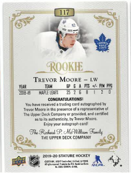 2019-20 UD Stature Rookie Auto Trevor Moore /199 č. 117