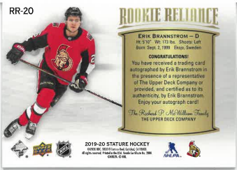2019-20 UD Stature Rookie Reliance Erik Brannstrom č. RR-20