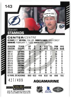2020-21 UD O-Pee-Chee Platinum Aquamarine Steven Stamkos /499 č. 143
