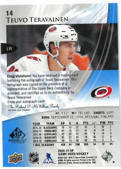 2020-21 UD SP Game Used Blue Auto Teuvo Teravainen č. 14