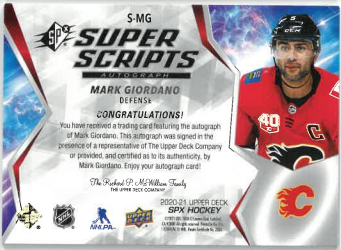 2020-21 UD SPx Super Script Mark Giordano č. S-MG