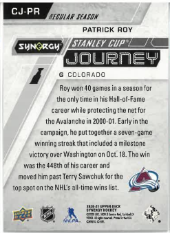 2020-21 UD Synergy Stanley Cup Journey PATRICK ROY /999 č. CJ-PR