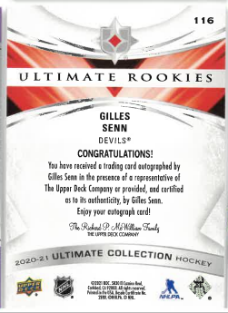 2020-21 UD Ultimate Collection Auto Gilles Senn /299 č. 116