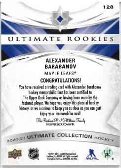 2020-21 Ultimate Collection Rookie Jersey Alexander Barabanov /649 č. 128