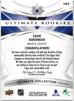 2020-21 Ultimate Collection Rookie Jersey Egor Korshkov /649 č. 187