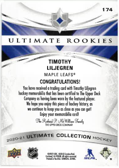 2020-21 Ultimate Collection Rookie Jersey Timothy Liljegren /649 č. 174