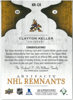 2021-22 UD Artifacts Clayton Keller NHL Remnants č. NR-CK