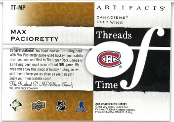 2021-22 UD Artifacts Threads Time Max Pacioretty č. TT-MP