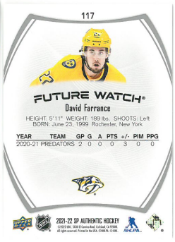 2021-22 UD Authentic David Farrance Future Watch /999 č. 117