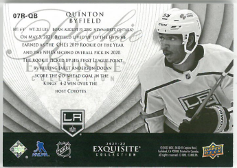 2021-22 UD Black diamond Exquisite Quinton Byfield /299 č. 07R-QB