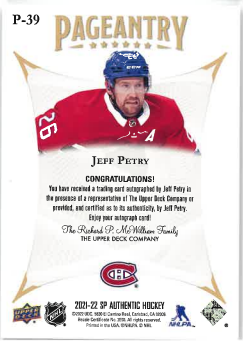 2021-22 UD SP Authentic Pageantry Auto Jeff Petry č. P-39