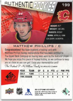 2021-22 UD SP Game Used Authentic Rookies Jersey Matthew Phillips č. 199