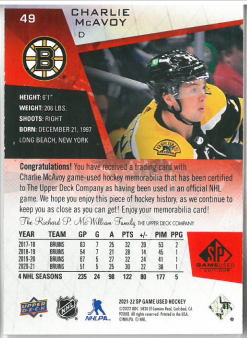 2021-22 UD SP Game Used Charlie McAvoy Jersey č. 49
