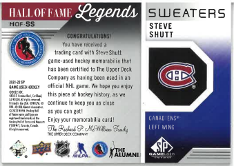 2021-22 UD SP Game Used Hall Of Fame Legends Steve Shutt č. HOF-SS
