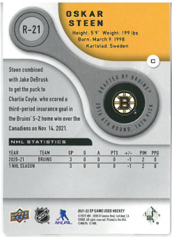 2021-22 UD SP Game Used Rookie Oskar Steen /999 č. R-21
