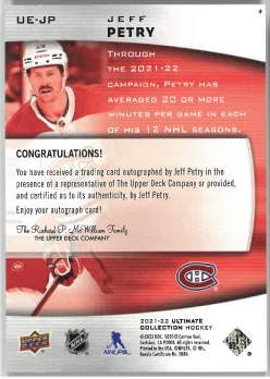 2021-22 UD Ultimate Collection Emblems Jeff Petry č. UE-JP
