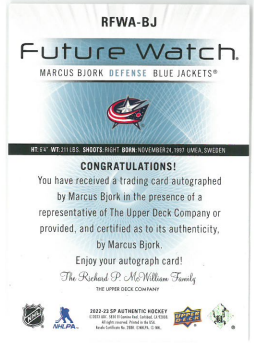 2022-23 SP Authentic Retro Future Watch Marcus Bjork /699 č. RFWA-BJ
