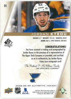 2022-23 UD SP Authentic Auto Jordan Kyrou č. 25