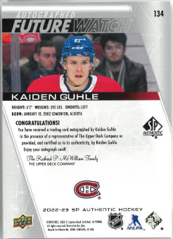2022-23 UD SP Authentic Autographed Future Watch Kaiden Guhle /999