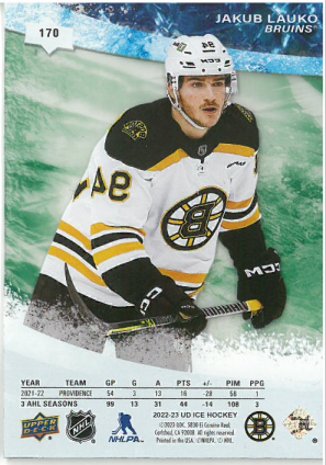 2022-23 UD Ice Jakub Lauko Ice Premieres /599 č.170