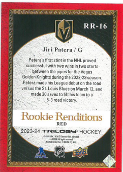 2023-24 UD Trilogy Rookie Renditions Jiří Patera /799 č. RR-16