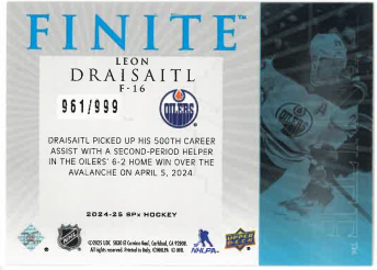 2024-25 UD SPx Finite Silver Leon Draisaitl /999 č. F-16