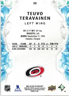 2021-22 UD Ice Green Teuvo Teravainen č. 39