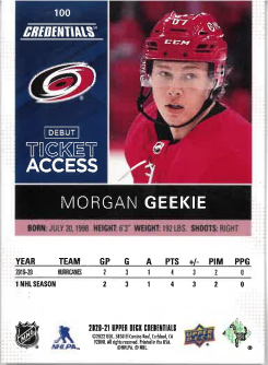 2020-21 UD Credentials Debut Ticket Acces Morgan Geekie /199 č. 100