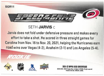 2021-22 UD Credentials Speed of the Game Seth Jarvis č. SGR11