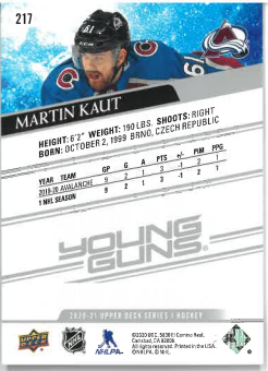 2020-21 UD Series I Young Guns Martin Kaut č. 217
