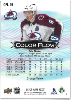2024-25 UD Allure Color Flow Orange-Yellow Cale Makar č. CFL-15