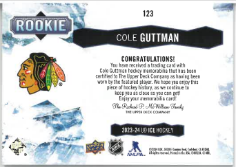 2023-24 UD Ice Rookie Jersey Cole Guttman č. 123