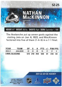2021-22 UD Ice Sub Zero Nathan Mackinnon č. SZ-25