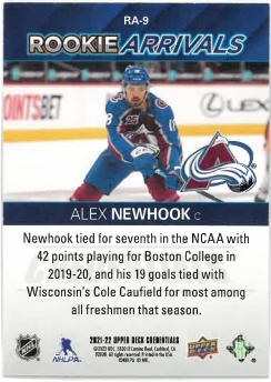2021-22 UD Credentials Rookie Arrivals Alex Newhook č. RA-9