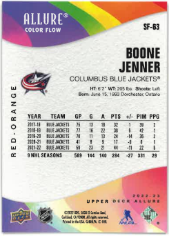 2022-23 UD Allure Color Flow Red-Orange Boone Jenner č. SF-63