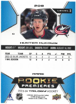 2023-24 UD Trilogy Rare Rookie Premieres lvl.3 Hunter McKown /299 č. 208