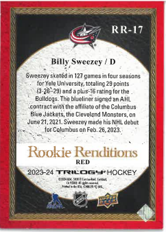 2023-24 UD Trilogy Rookie Renditions Red Billy Sweezey /799 č. RR-17