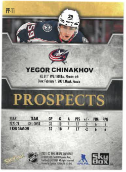 2021-22 UD Metal Universe Skybox Prospects Yegor Chinakhov č. PP-11