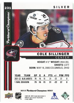 2022-23 UD Parkhurst Champions Silver Cole Sillinger č. 231