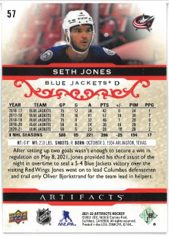 2021-22 UD Artifacts Ruby Seth Jones /499 č. 57