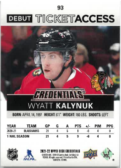2021-22 UD Credentials Debut Ticket Access Wyat Kalynuk /999 č. 93