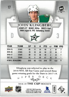 2018-19 UD The Cup John Klingberg /249 č. 17
