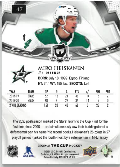 2020-21 UD The Cup Miro Heiskanen /249 č. 47