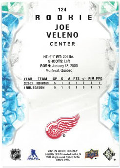 2021-22 UD Ice Green Rookie Joe Veleno č. 124