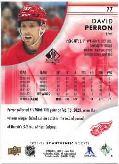 2023-24 UD SP Authentic Limited David Perron č. 77