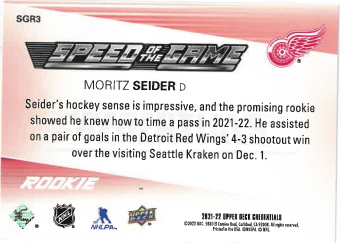 2021-22 UD Credentials Speed of the Game Rookie Moritz Seider č. SGR3
