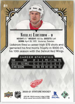 2020-21 UD Stature Base Niclas Lindstrom č. 81