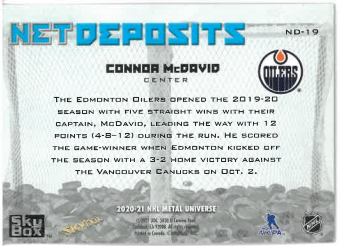 2020-21 UD Metal Universe Net Deposits Connor McDavid č. ND-19